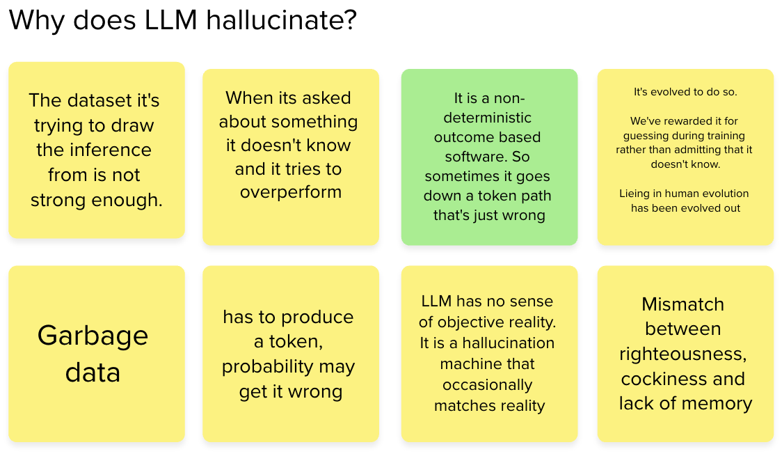 So, back to the original question, why is an AI chatbot not telling me the truth? Why is it hallucinating? In this LLM example, even with the role-playing trick, it would have told me that the capital of France is France!