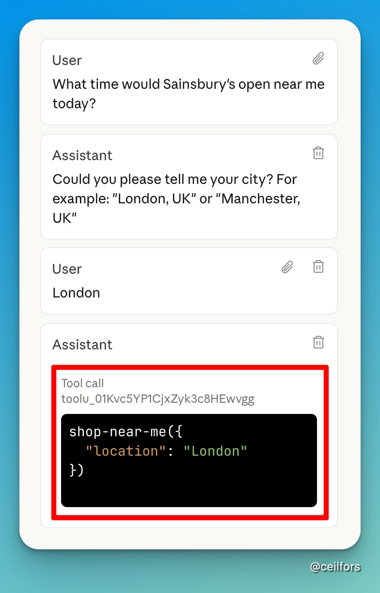 And before we close, I reiterated the idea that the only LLM input we could control is the context, and the reason LLM understands this specific tool is that the detail has been injected into the context window.